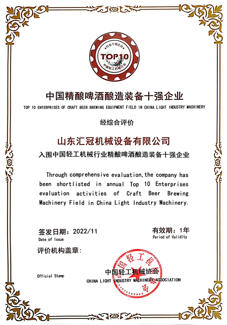 近日,我國(guó)輕工業(yè)聯(lián)合會(huì)發(fā)布了2022年度中輕工業(yè)百?gòu)?qiáng)企業(yè),另外一起發(fā)布的還有我國(guó)科技百?gòu)?qiáng)榜、我國(guó)輕工業(yè)食品50強(qiáng)企業(yè)等,都是來(lái)自各個(gè)輕工業(yè)范疇的優(yōu)秀品牌。其間,山東赫爾曼上榜2022年度“中國(guó)輕工機(jī)械行業(yè)精釀啤酒釀造裝備十強(qiáng)企業(yè)”,在此,我司已經(jīng)連續(xù)兩年上榜精釀啤酒釀造裝備十強(qiáng)企業(yè)。